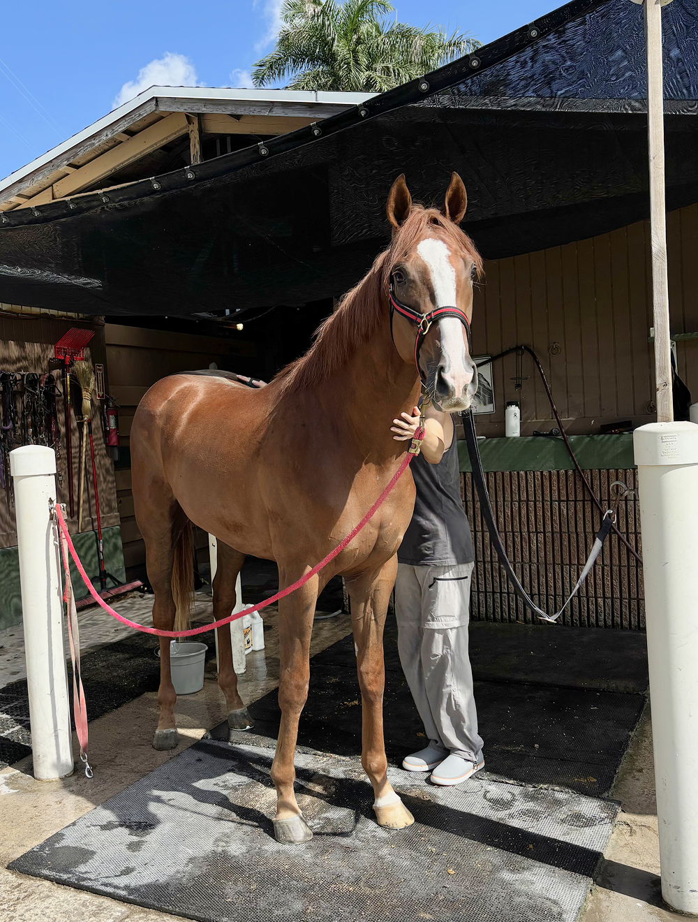 Sandro is an off-track thoroughbred who came to the SFSPCA through the Thoroughbred Aftercare Alliance, an organization that helps former racehorses transition safely into new lives. He arrived with a bowed tendon and is currently on a structured rehabilitation plan to support his healing. With time, rest, and care, we look forward to seeing Sandro regain his strength and enjoy a new chapter beyond the racetrack.